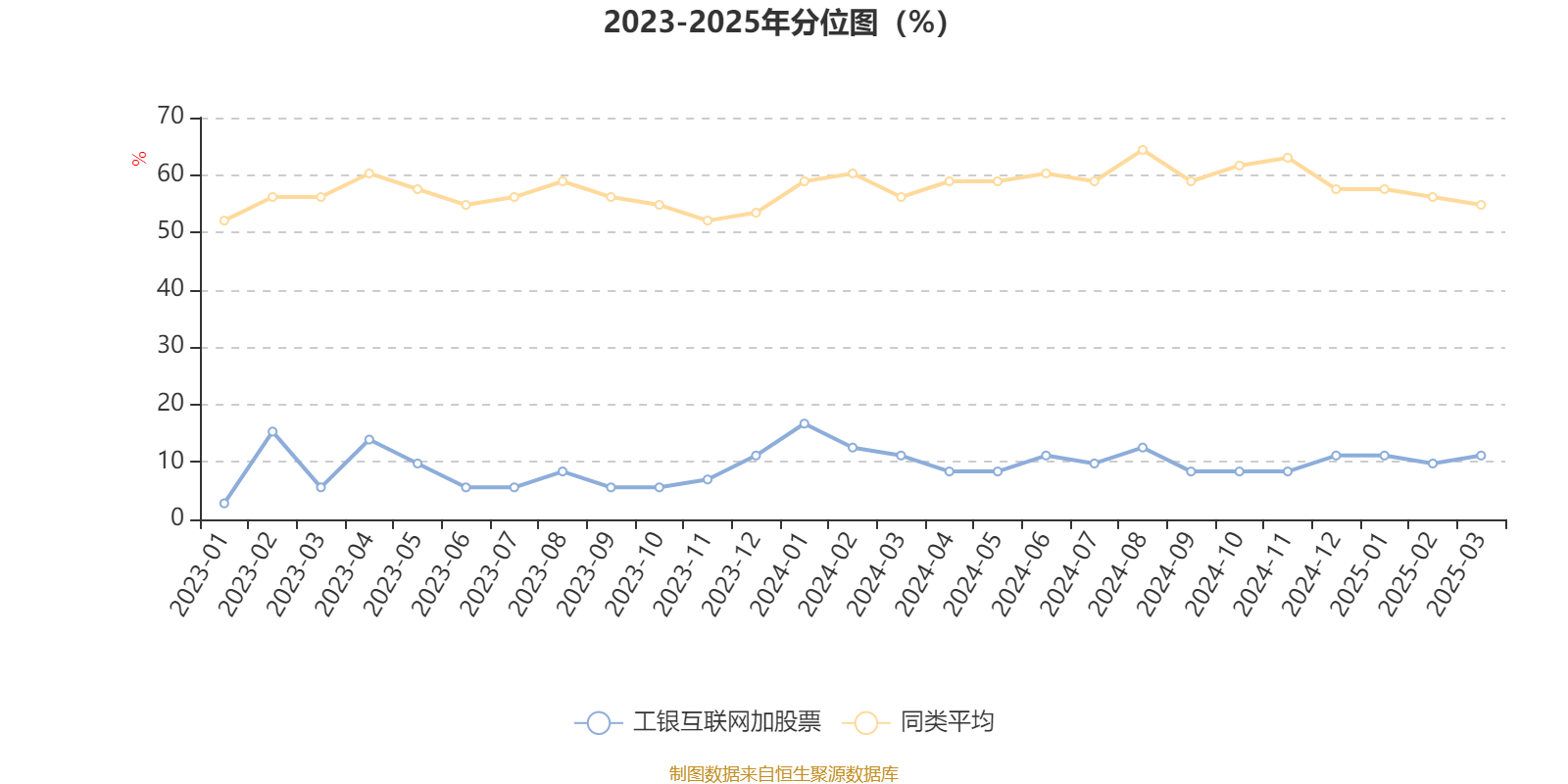 通过所选区间该基金净值增长率分位图,可以观察该基金与同类基金业绩比较情况。图为坐标原点到区间内某时点的净值增长率在同类基金中的分位数。