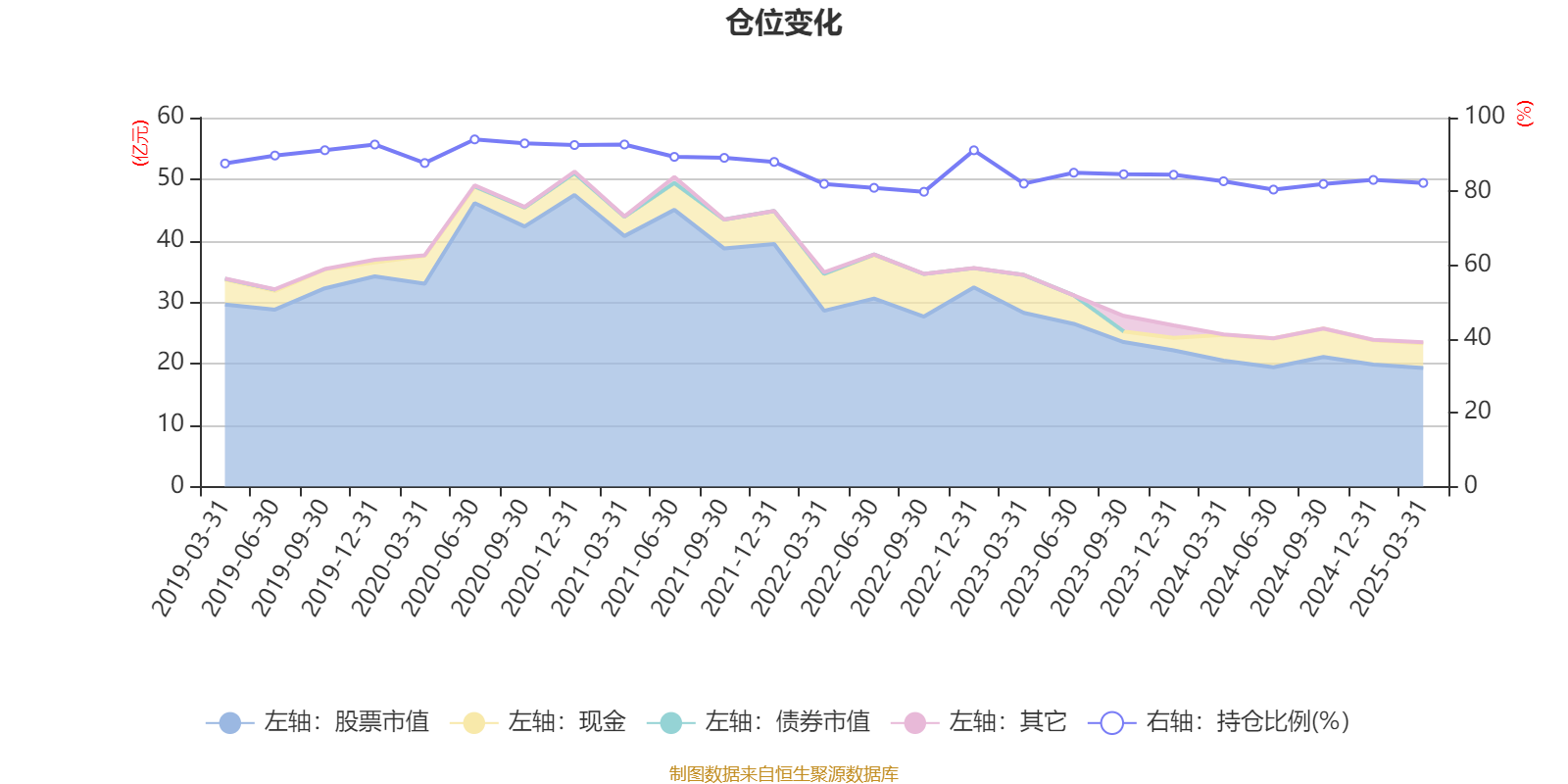 据定期报告数据统计,近三年平均股票仓位为83.25%,同类平均为88.65%。2020年上半年末基金达到94.09%的最高仓位,2022年三季度末最低,为79.9%。