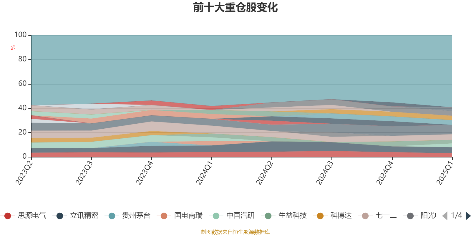 截至2025年一季度末,基金十大重仓股分别是宁德时代、立讯精密、七一二、恒瑞医药、美的集团、三环集团、航天电器、中国汽研、思源电气、生益科技。